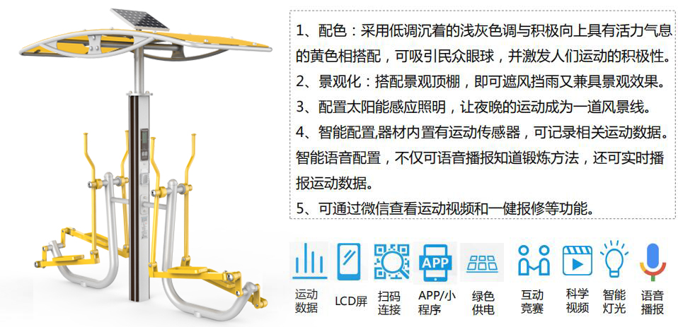 KS体育直播全民健身产品涵盖健身路径、运动场馆、篮乒气羽排等产品,分为多个系列,先进的制造工艺、严苛的质量检测,确保产品性能优良、品质安全可靠,让运动简单科学。并将全民健身器材(户外路径器材、体育场馆等产品)进行智能化升级和互联,实现全人群覆盖、全场景智能,让运动赞美生活。
