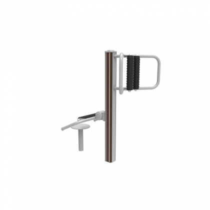 锻炼方法: a.坐于座板上,腰部紧靠按摩柱,双手握扶手,上下拉动按摩柱进行运动。b. 背部按摩:两手握住把手,腰按摩轮,身体左右运动