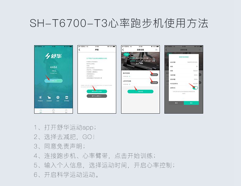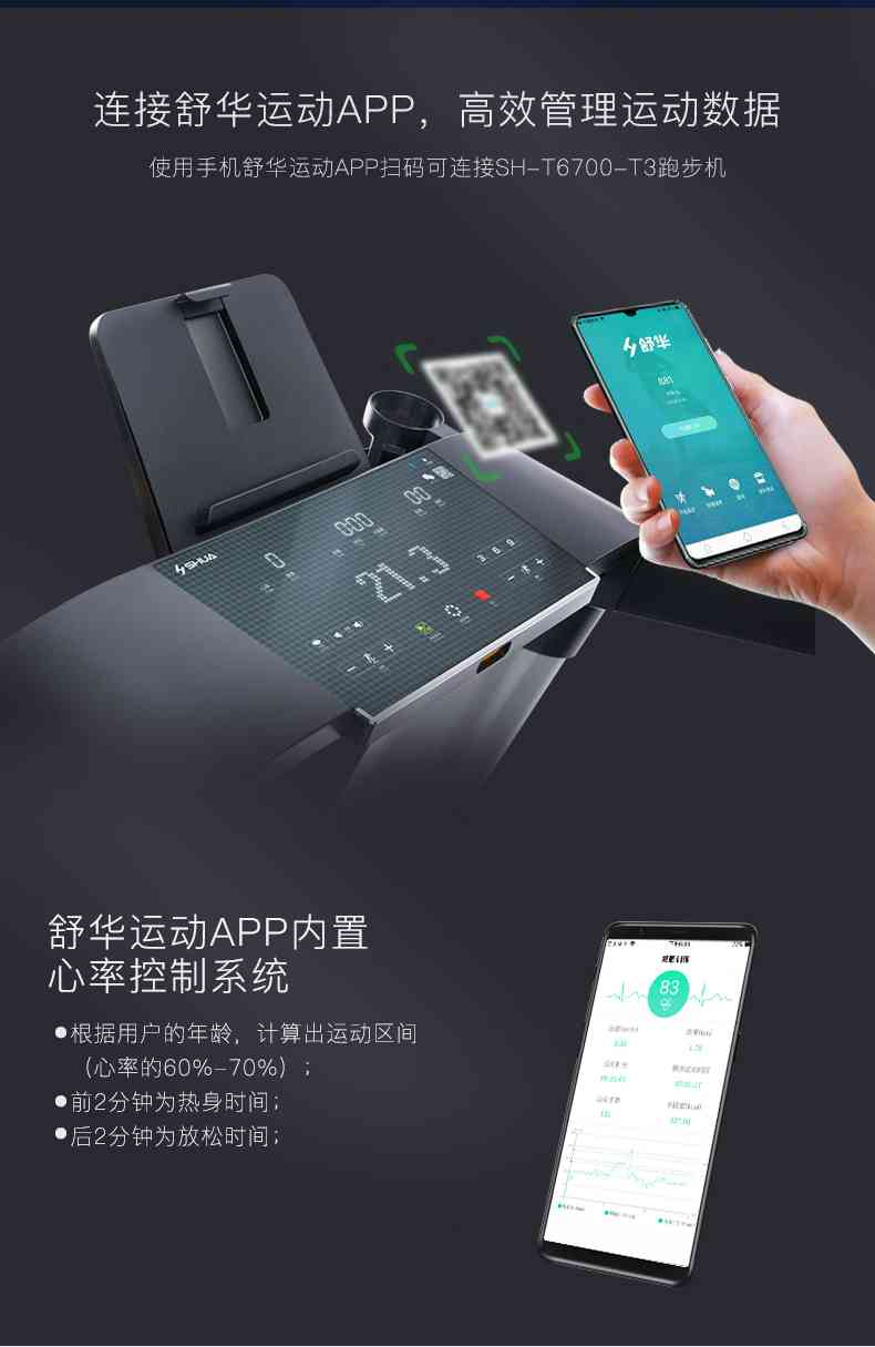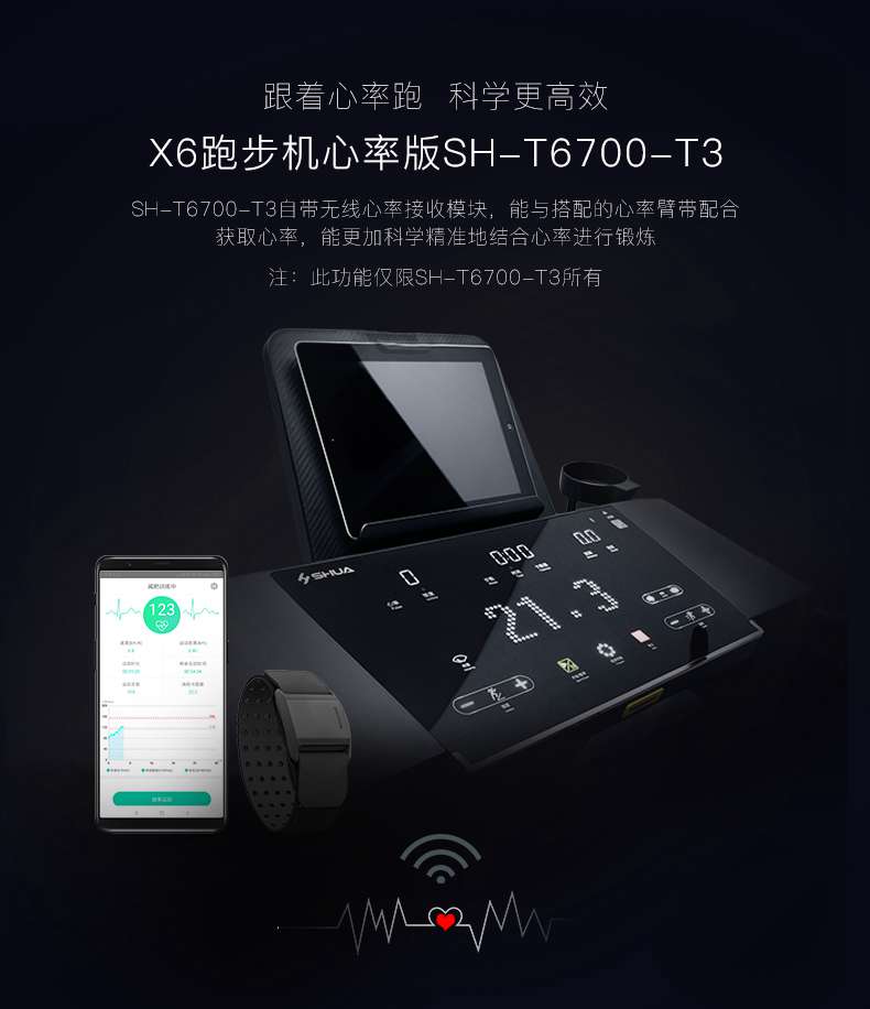 SH-T6700-T3跑步机为了帮助用户进行更加科学有效的运动,搭载KS体育直播APP连接心率臂带实现心率控制,通过监测运动心率从而实现科学运动。