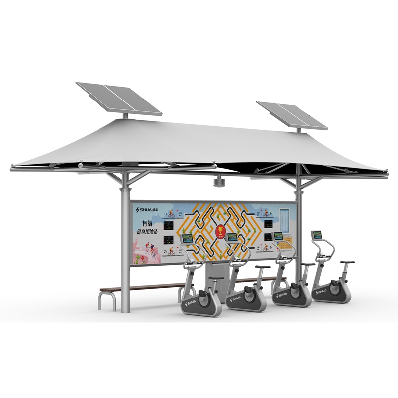 1、整个健身站均采用太阳能+自发电环保发电方式。