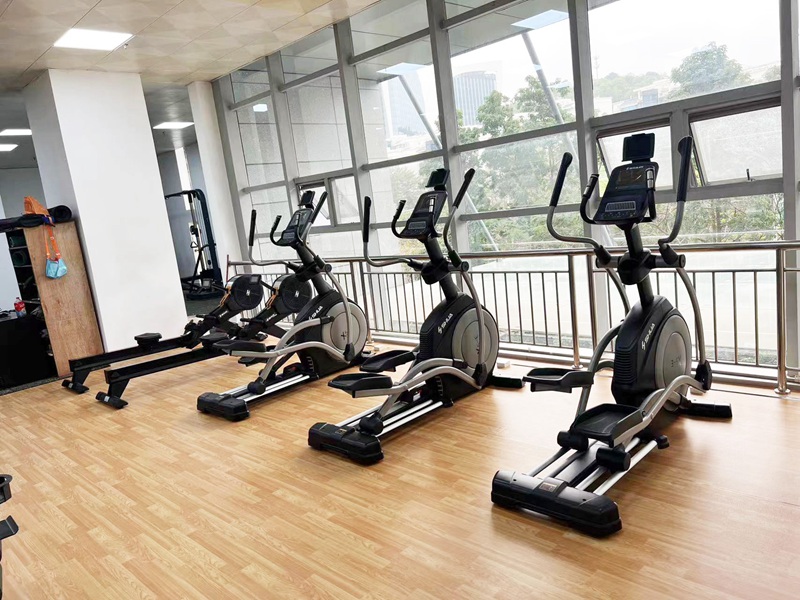 企事业单位健身房面积约为240平方,在接到客户项目需求时,KS体育根据客户的需求及预算,从装修布局、科学分区、合理的器材搭配等方面,为其提供了一站式健身解决方案。有氧区域配置KS体育直播V9跑步机、X5跑步机,X5-E智能椭圆机、动感单车、划船器等有氧训练器材,有效锻炼提升人体心肺功能。