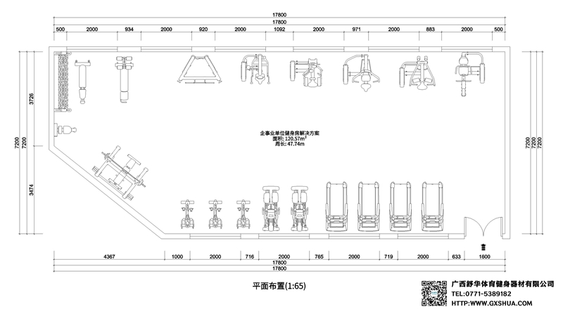 此方案要求面积小于120平米,适用于企事业单位、酒店会所、楼盘社区、学校等健身场所,能满足15-25人同时健身使用。(方案根据场地空间大小、预算、产品需求等进行配置仅为启发性参考)