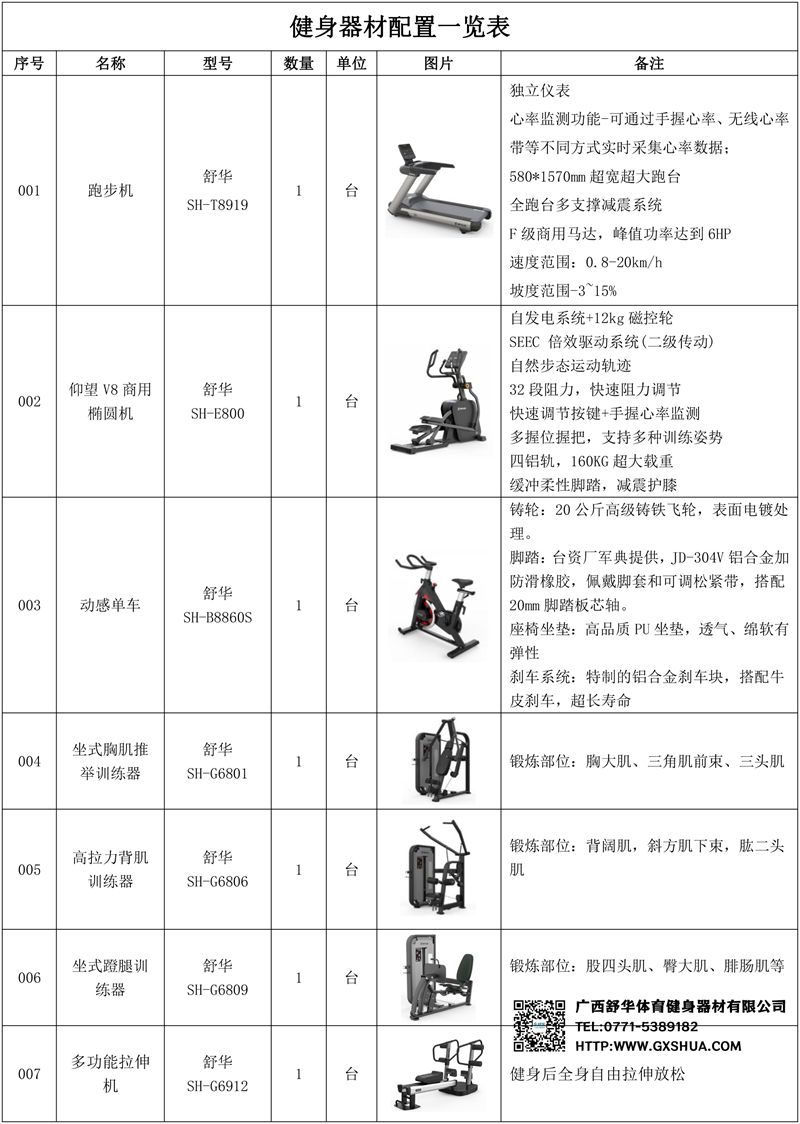 1.KS体育直播V9智能跑步机SH-T8919*3台-独立仪表-简洁大气,全新外观设计,健康运动新选择;心率监测功能,可通过手握心率、无线心率带等不同方式实时采集心率数据;580*1570mm超宽超大跑台-跑感舒适,跑台整体安全稳定;全跑台多支撑减震平台,保证跑台超强支撑力,达到180kg支撑,满足专业健身房需求。F级商用马达-超强马达,AC 3.0HP 交流,峰值功率达到6HP,F级商用品质。速度范围达到0.8-20km/h;V9跑步机可实现跑台扬升功能,坡度范围-3~15%,满足客户不同的锻炼需求。