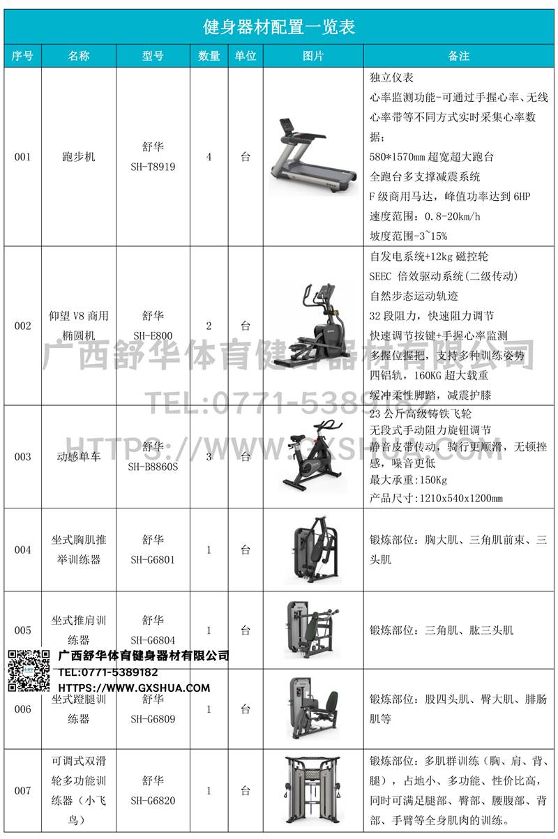 1.KS体育直播V9跑步机SH-T8919*4台-独立仪表-简洁大气,全新外观设计,健康运动新选择;心率监测功能,可通过手握心率、无线心率带等不同方式实时采集心率数据;580*1570mm超宽超大跑台-跑感舒适,跑台整体安全稳定;全跑台多支撑减震平台,保证跑台超强支撑力,达到180kg支撑,满足专业健身房需求。F级商用马达-超强马达,AC 3.0HP 交流,峰值功率达到6HP,F级商用品质。速度范围达到0.8-20km/h;V9跑步机可实现跑台扬升功能,坡度范围-3~15%,满足不同的锻炼需求。