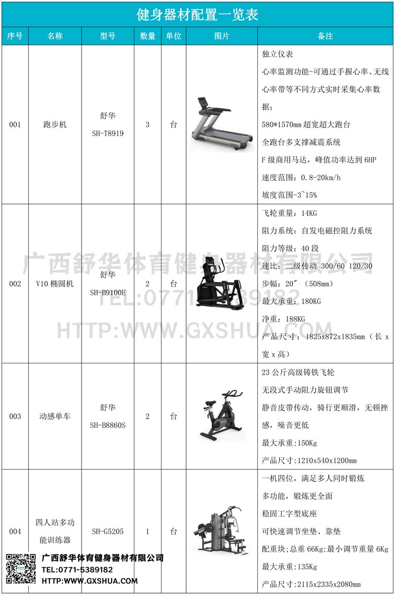 1.KS体育直播V9跑步机SH-T8919*3台-独立仪表-简洁大气,全新外观设计,健康运动新选择;心率监测功能,可通过手握心率、无线心率带等不同方式实时采集心率数据;580*1570mm超宽超大跑台-跑感舒适,跑台整体安全稳定;全跑台多支撑减震平台,保证跑台超强支撑力,达到180kg支撑,满足专业健身房需求。F级商用马达-超强马达,AC 3.0HP 交流,峰值功率达到6HP,F级商用品质。速度范围达到0.8-20km/h;V9跑步机可实现跑台扬升功能,坡度范围-3~15%,满足不同的锻炼需求。