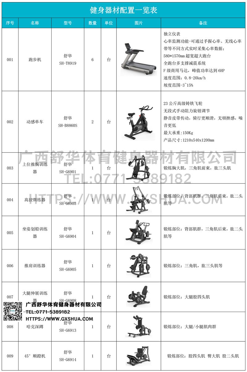 1.KS体育直播V9跑步机SH-T8919*6台-580*1570mm超宽超大跑台-跑感舒适,跑台整体安全稳定;全跑台多支撑减震平台,保证跑台超强支撑力,达到180kg支撑,满足专业健身房需求。F级商用马达-超强马达,AC 3.0HP 交流,峰值功率达到6HP,F级商用品质。速度范围达到0.8-20km/h;V9跑步机可实现跑台扬升功能,坡度范围-3~15%,满足客户不同的锻炼需求。