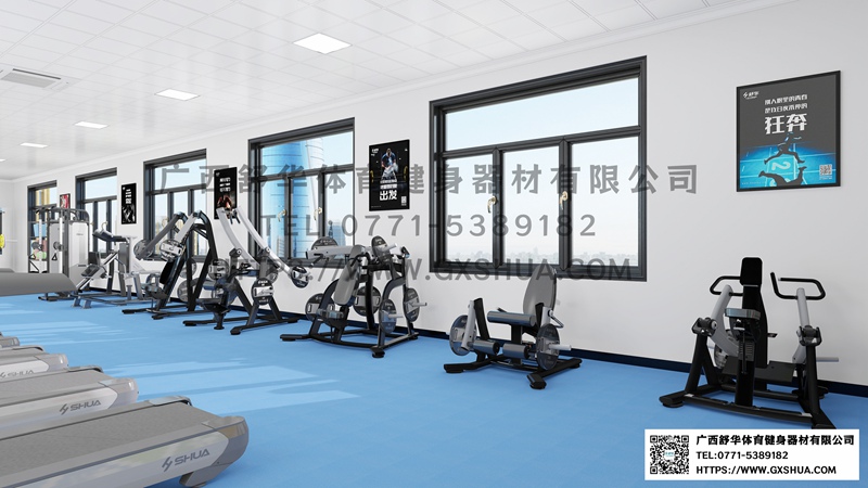 19.安全地垫*40m²-铺设专业的健身房橡胶地垫,颜色选择深灰色或黑色,具有优秀的减震、防滑和耐磨性能,为员工提供安全舒适的运动环境,同时减少器械使用时产生的噪音。