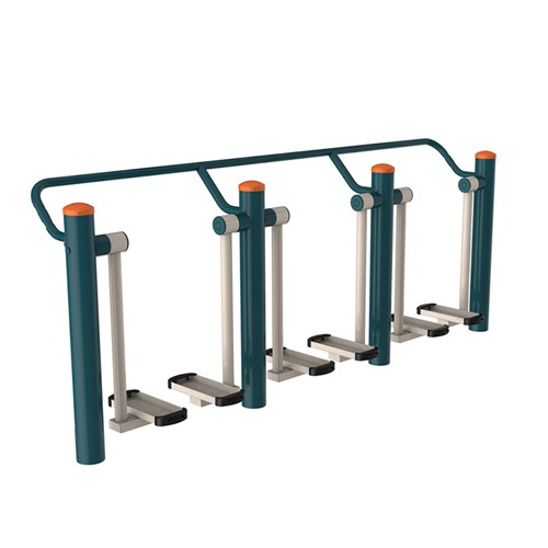 b.不扶杠太空漫步:两手不扶扶手,自然摆动,脚踏踏板,两脚前后走动。