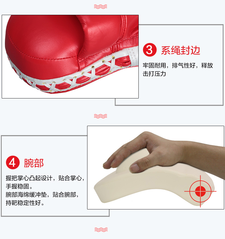系绳封边,牢固耐用,排气性好,释放击打压力