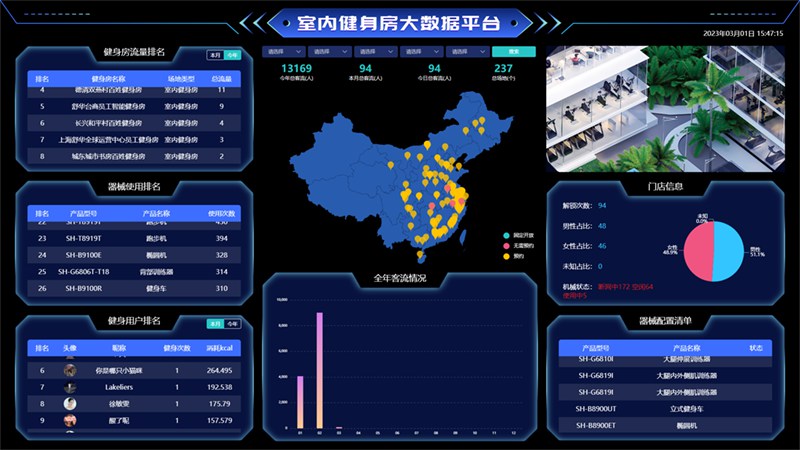 值得一提的是,运动健康促进中心场地的运行情况、来访数量统计、现场运动排名、各器械使用情况及体测大数据等数据都可通过后台数据上传进行汇总,并在现场大屏上实时展示,激发用户的运动热情。智慧管理大数据平台也为管理者提供了全面、准确的数据支持,可以实现全民运动数据监测及统计,让管理信息化、运动科学化、管理智能化。