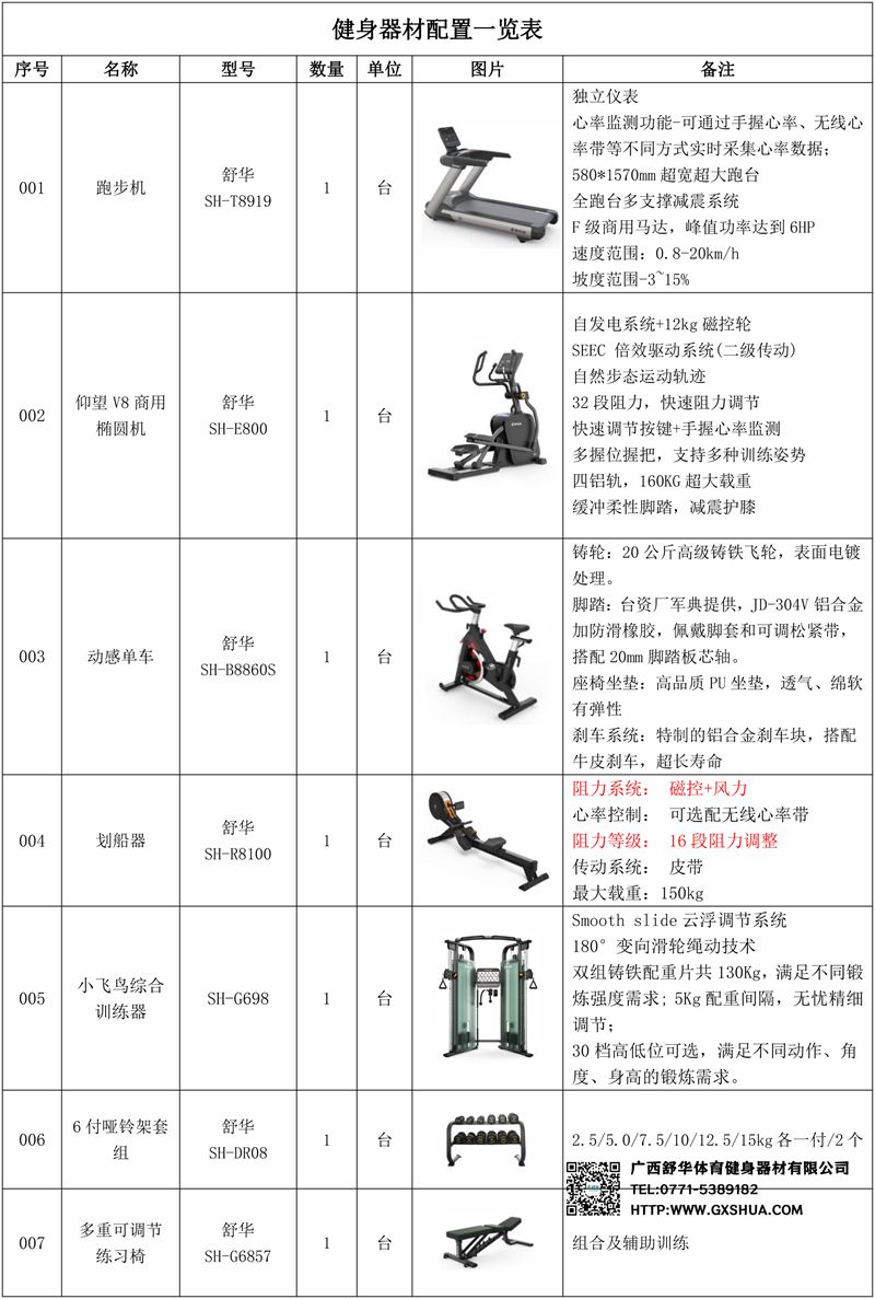 1.KS体育直播V9智能跑步机SH-T8919*1台-独立仪表-简洁大气,全新外观设计,健康运动新选择;心率监测功能,可通过手握心率、无线心率带等不同方式实时采集心率数据;580*1570mm超宽超大跑台-跑感舒适,跑台整体安全稳定;全跑台多支撑减震平台,保证跑台超强支撑力,达到180kg支撑,满足专业健身房需求。F级商用马达-超强马达,AC 3.0HP 交流,峰值功率达到6HP,F级商用品质。速度范围达到0.8-20km/h;V9跑步机可实现跑台扬升功能,坡度范围-3~15%,满足客户不同的锻炼需求。