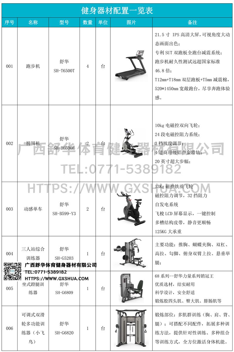 1.KS体育直播X5 Pro跑步机SH-T6500T*4台-经典时尚造型配色,简约Z字车架造型,融合各种家居风格,彰显奢华运动质感;21.5英寸高清触控屏-传承动感美学,成就时代典型之作全新升级V3.0系统,支持系统在线升级,极大提升用户交互体验;专利减震跑台-采用SUT双层跑板、全跑台减震系统,且该减震科技获得国家专利,有效减少关节冲击,52cm宽跑台搭配精抽雏形滚筒,稳固不位移;F级马达动力强劲-5.0HP峰值马达,2.5HP持续输出,0~15%坡度调节,最高18km/h时速,胜任不同类型训练;