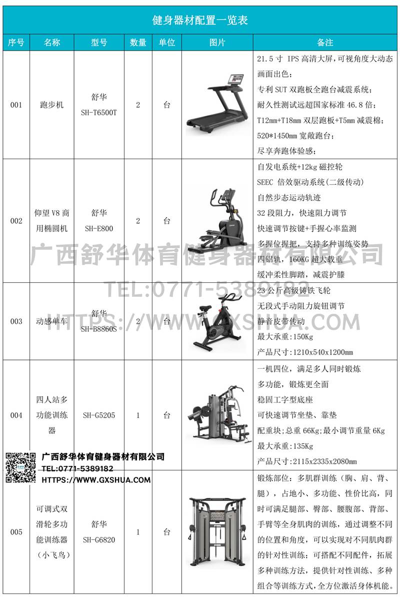 1.KS体育直播X5 Pro跑步机SH-T6500T*2台-采用高性能电机,提供稳定动力,支持长时间高强度运行,适合长时间有氧训练,跑台宽敞,提供舒适跑步空间,减少运动中的束缚感,适合不同体型用户。配备先进减震系统,有效缓解跑步对关节的冲击,降低运动损伤风险,内置智能控制系统,支持多种预设程序和个性化训练计划,用户可根据需求调整速度和坡度,满足多样化训练。