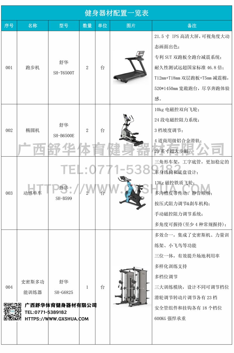 1.KS体育直播X5 Pro跑步机SH-T6500T*2台-采用高性能电机,提供稳定动力,支持长时间高强度运行,适合长时间有氧训练,跑台宽敞,提供舒适跑步空间,减少运动中的束缚感,适合不同体型用户。配备先进减震系统,有效缓解跑步对关节的冲击,降低运动损伤风险,内置智能控制系统,支持多种预设程序和个性化训练计划,用户可根据需求调整速度和坡度,满足多样化训练。