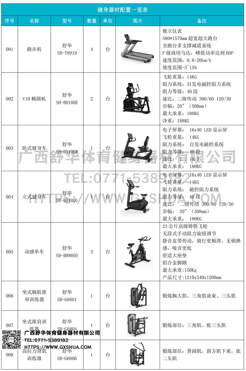 1.KS体育直播V9跑步机SH-T8919*4台-独立仪表-简洁大气,全新外观设计,健康运动新选择;心率监测功能,可通过手握心率、无线心率带等不同方式实时采集心率数据;580*1570mm超宽超大跑台-跑感舒适,跑台整体安全稳定;全跑台多支撑减震平台,保证跑台超强支撑力,达到180kg支撑,满足专业健身房需求。F级商用马达-超强马达,AC 3.0HP 交流,峰值功率达到6HP,F级商用品质。速度范围达到0.8-20km/h;V9跑步机可实现跑台扬升功能,坡度范围-3~15%,满足客户不同的锻炼需求。